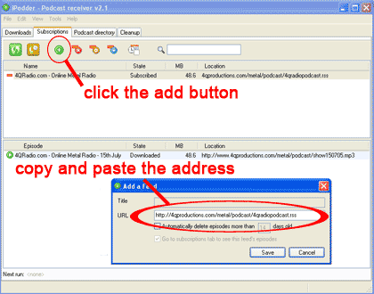 2. Add 4QRADIO METAL SHOW feed by copying and pasting this link: